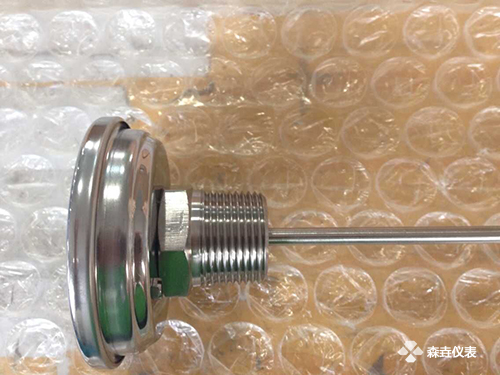 而森垚95%的双金属温度计是出口的,做的比较多的螺纹都是1/4"NPT,1/2"NPT。这次的客户要求的定制品,1"NPT螺纹,很大有木有,小编也是第一次看到,见下图。