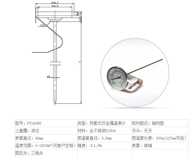 今天我们以PT1438G温度计来举例,介绍这款便携式双金属温度计结构图让大家熟悉一下。