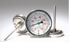 双金属温度计是一种测量中低温度的现场检测仪表。可以直接测量各种生产过程中的-80℃-+500℃范围内液体蒸汽和气体介质温度。主要的元件是一个用两种或多种金属片叠压在一起组成的多层金属片,利用两种不同金属在温度改变时膨胀程度不同的原理工作的。优点是现场显示温度,直观方便;安全可靠,使用寿命长;品种齐全,适应于各种现场安装的需要。