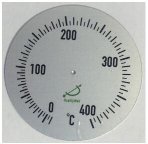 双金属温度计表盘温度范围:‐80~550C, 特殊的温度范围和印刷根据客户要求定制。