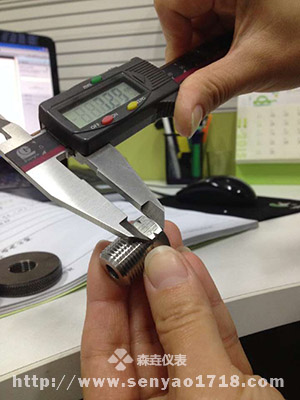 4.根据图纸的参数,用卡尺测量螺纹的孔径。