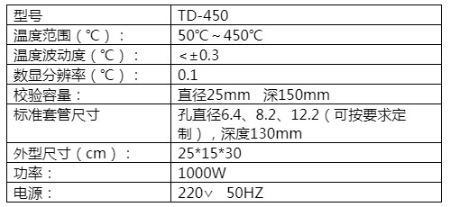 干式温度校验槽又叫干井炉、计量炉,它主要是为用户在工作时提供一个热冷受控,温度均匀恒定的场源,对试验样品或生产的产品进行恒定温度试验或测试。它的规格型号如下: