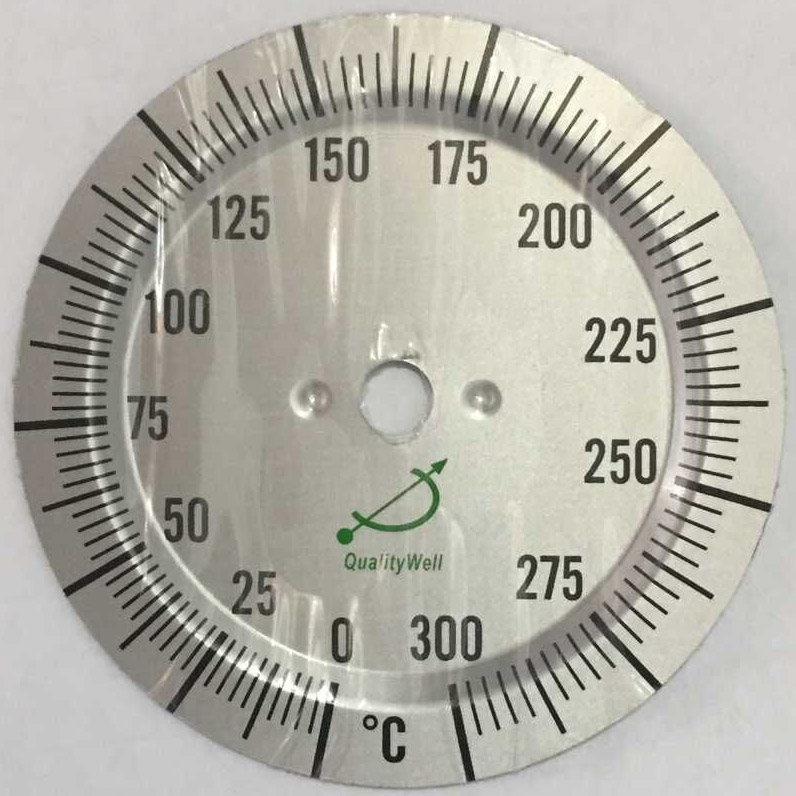 一般双金属温度计的表牌有两种,一种是铝底的,另一种是白底的(其实就是在铝底的表牌上面涂了一层白漆)。那么如何选择双金属温度计的表牌呢?从买家的角度考虑,表牌的作用就是显示温度,所以选白底和铝底的差异不大,主要看个人喜欢。而从双金属温度计生产厂家的角度考虑就不一样的,这里有一个工艺的问题,一般温度范围低于250C时选铝底和白底都可以,但是温度超过250C以后,白底表牌上的油漆可能会融化,所以最好选铝底。
