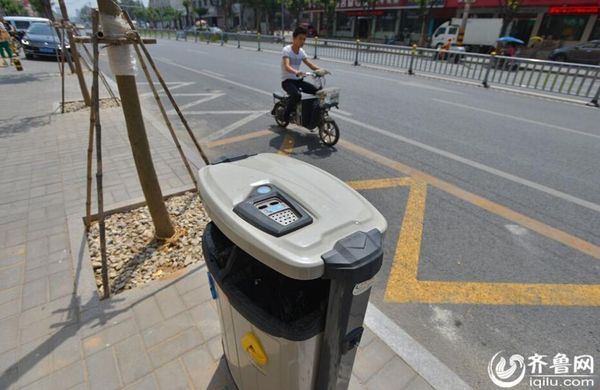 近日,济南市和平路升级改造工程完工,新改造的道路两旁重新安装了果皮箱,让市民意外的是果皮箱上并带有指针式温度计。带温度表主要是人性化的设计,让产品更好地为市民服务。一些市民纷纷表示:“果皮箱上带温度计,没那个必要,这样只能增加成本”。还有市民表示:“城市公共设施创新,都是为了方便市民”。