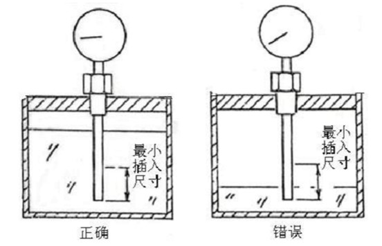 不同的型号、温度范围和感温管直径共同决定了双金属温度计的最小插入深度。不能低于1/3(插入/总长),所以感温管的长度必须要大于最小插入深度,才能确保性双金属温度计的精准度。