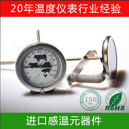 在这里,森垚仪表建议:如果找不到说明书,从温度计的茎秆上找到那个凹痕或凹坑,这个是感应区的终端位置。盘面显示型温度计必须到食物内的2-3寸,而大多数数显温度计只需要用一个很小的尖就能得到准确的读数。