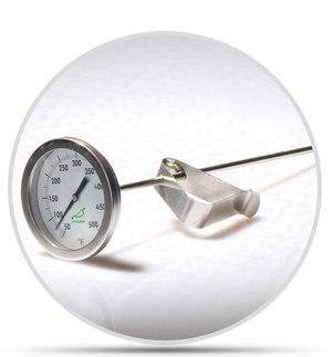 食品用双金属温度计属于双金属温度计的一种,它的工作原理基于固体受热膨胀的原理,把两片膨胀系数差异很大的金属片焊在一起。当温度变化时,差异很大的膨胀系数造成了不同的膨胀和收缩,致使金属片产生弯曲变形。根据不同的变形而产生不同的转动量,转动量带动连接的转轴和另一端的指示针,指示出了温度。