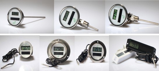太阳能温度计,是利用太阳能和有线传感器提供精确的温度指示。它是在光水平高于100LUX显示的,当光水平下降是,利用后备电池电路提供功率来持续显示的。它的显示屏材质一般是LCD。