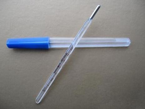 体温计是一种可以记录这温度计所曾测定的最高温度。用后的体温计应“回表”,即拿着体温计的上部用力往下猛甩,可使已升入管内的水银,重新回到液泡里。其它温度计绝对不能甩动,这是体温计与其他液体温度计的一个主要区别。目前普通体温计正在逐渐被电子体温计(下图)所替代,电子体温计有测温速度快,非接触性等优点,但也有废电池环境污染的缺点。