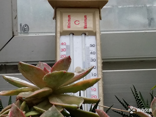 最高最低温度计经常运用于暖房内,比如说植物园的温室,它能记录在一定的时间内空气中的最高温度和最低温度,能测量的温度范围是-40℃~50℃。由ABS塑料外壳和水银玻璃管组成,左边玻璃柱为最低温度,右边为最高温度。玻璃柱里的蓝色柱体为指示标志,读数时看蓝色指示标最下端。温度计最上端有屋檐和挂钩孔,可以挡风遮雨和悬挂在大棚中。